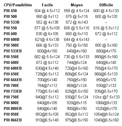 • et si on passe a 100Mhz on obtient un Celeron 700Mhz!!!! ..................